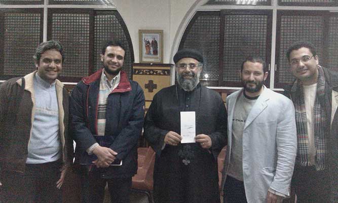 Team leaders of Ieish-o-Malh with Father Athanasios in a Heliopolis Church northern Cairo.